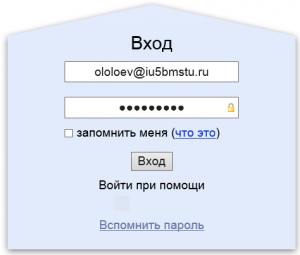 Важно! При входе логином будет не ololoev, а полностью ololoev@iu5bmstu.ru:
