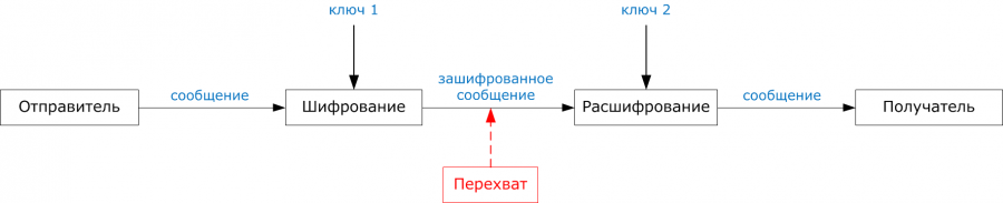 Используются два ключа: открытый (публичный) и закрытый (секретный). Секретный есть только у получателя, а публичный можно раздавать кому угодно.