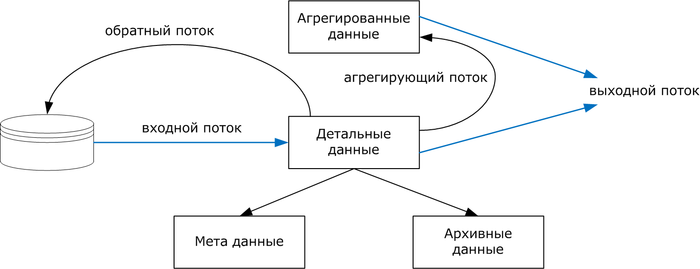 - формальные - кроме фактических данных хранят ещё и агрегированные данные.