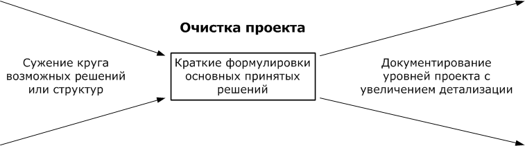 - разбиение на уровни абстракций. От самых крупных, важных вещей в проекте к самым мелким;