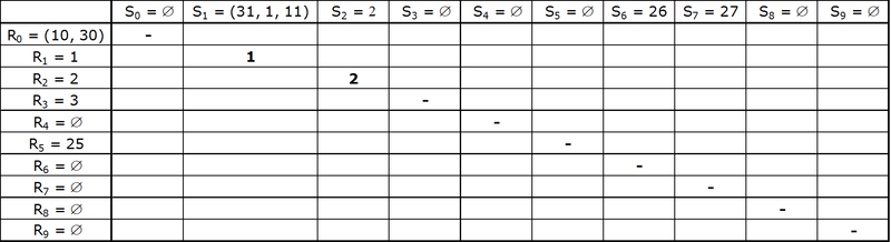 - $$R_i$$ - подмножество номеров счетов из таблицы $$R$$, у которых значение хэш-функции равно $$i = 0..9$$