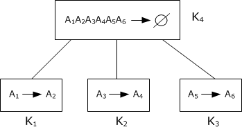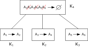 - $$A_1 A_2 A_3 A_4 A_5 A_6\rightarrow\varnothing$$, $$K_4 = A_1 A_2 A_3 A_4 A_5 A_6$$