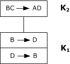 Итоговая $$F = (B\rightarrow D, D\rightarrow B, BC\rightarrow A)$$