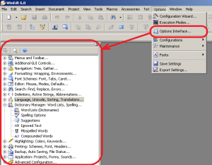 Список файлов конфигурации вызывается пунктом меню Options - Options Interface....